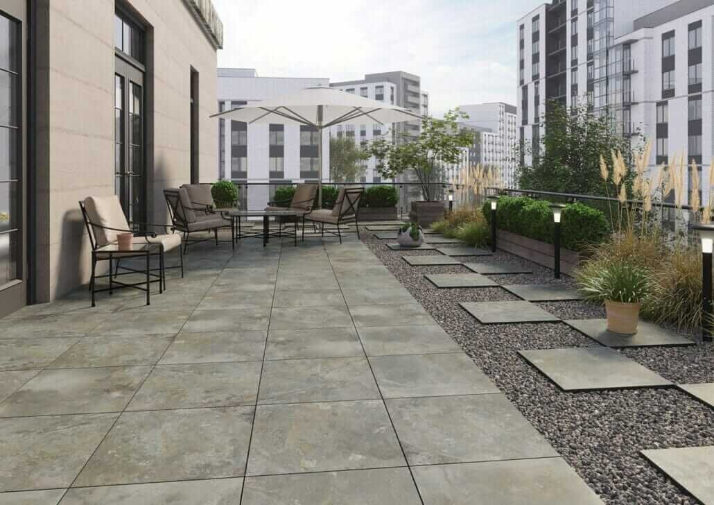 MDS Terrace objektu galerijā var apskatīt piemērus, kā var būt flīžu terases uzstādīta .